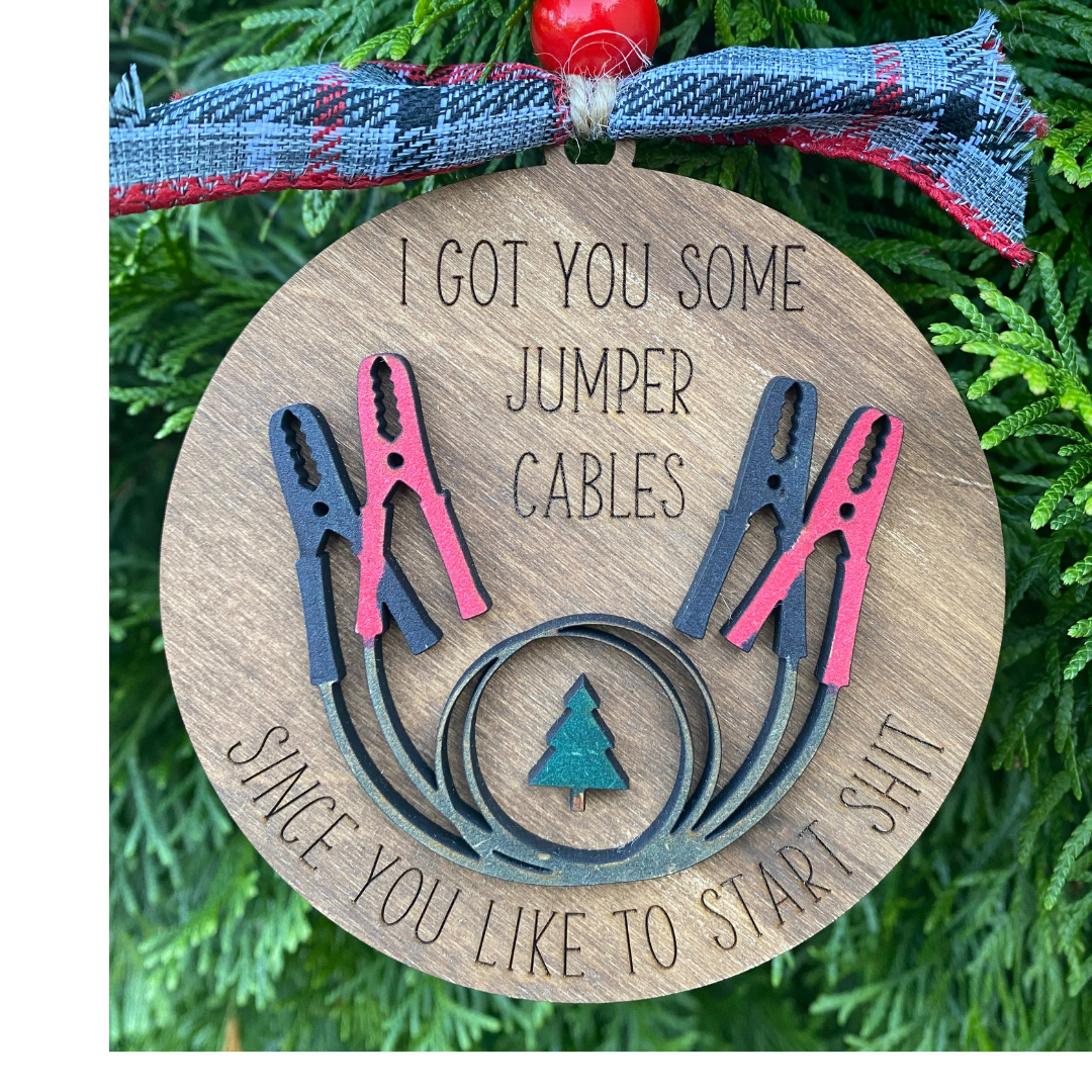 Get ready to add a spark of humor to your holiday decor with our **"Because You Like to Start Shit" Jumper Cables Ornament**! This unique and funny ornament is perfect for those who love a good laugh and want to lighten the mood during the festive season.