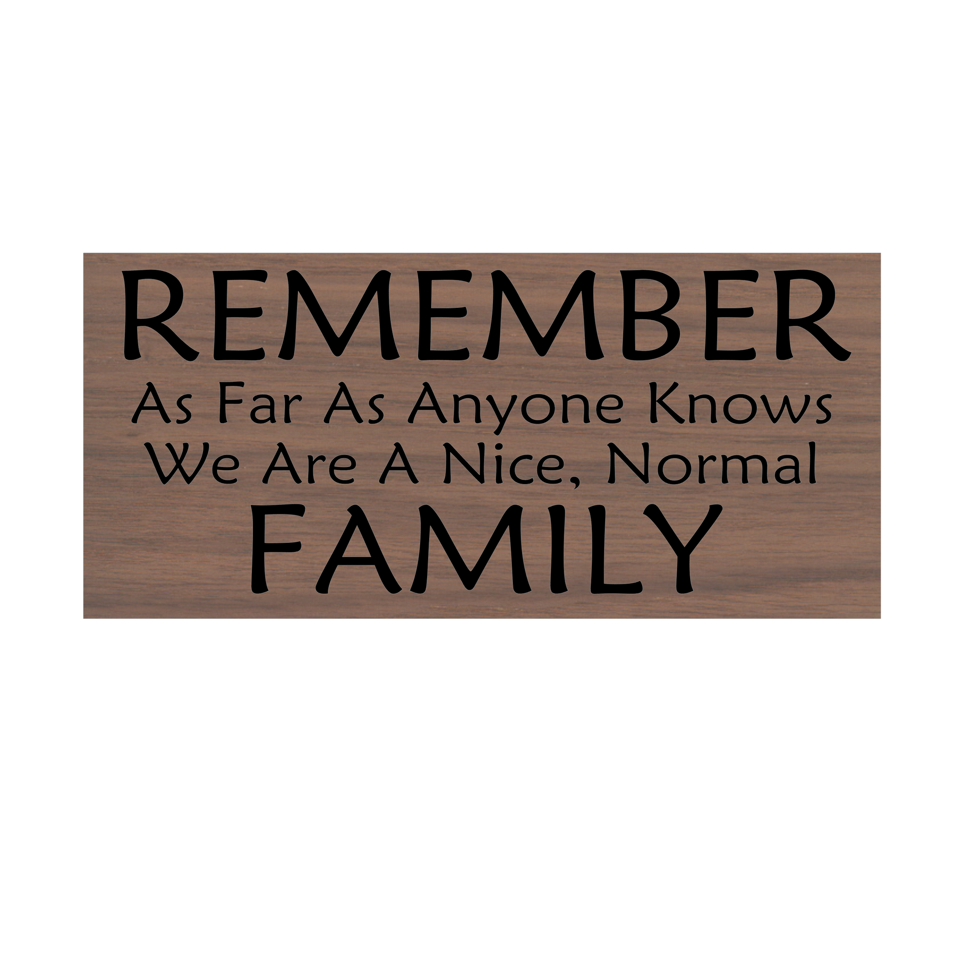 Bring a touch of humor to your home with our whimsical sign that playfully states, 'Remember, we are a nice normal family.' Crafted with a lighthearted spirit, this wood sign adds a delightful and charming touch to your home decor. Whether displayed prominently or shared as a humorous gift, let this sign be a playful reminder that normalcy is always subject to interpretation in the wonderful world of family life.