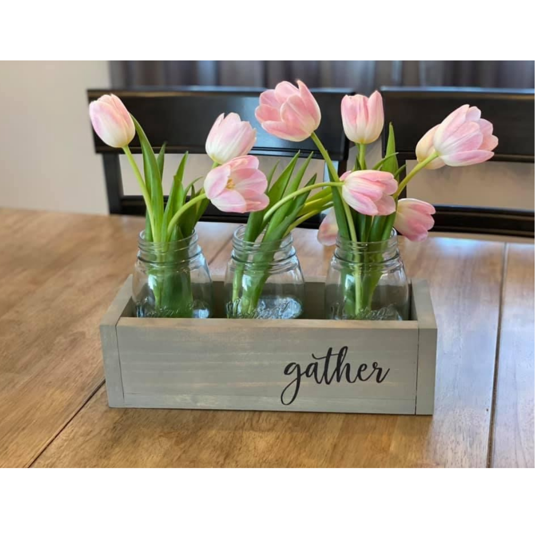 Introducing the Mason Jar Box - cute and practical with endless possibilities! Use it as a centerpiece, storage, cutlery holder, and more. Makes a great gift or add some spring flowers for a beautiful touch. Versatile and charming - the perfect addition to any home!