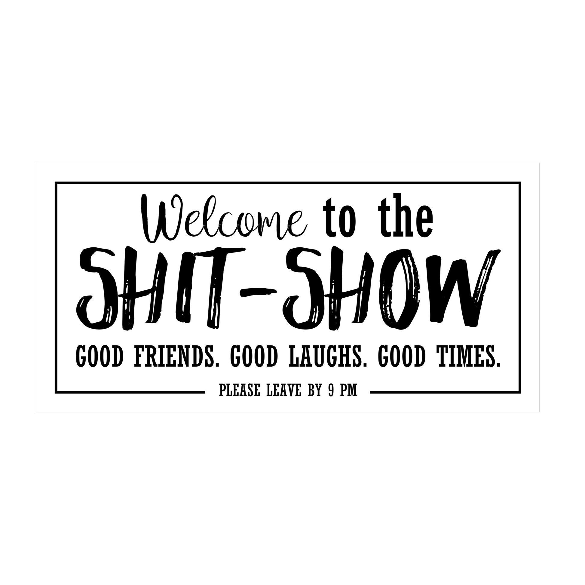Add a dash of humor to your home with our snarky sign that warmly declares, 'Welcome to the Shit Show: good friends, good laughs, good times—leave by 9.' Designed with a lighthearted spirit, this wood sign is a playful addition to your home decor. Whether hung in your entertainment space or shared as a humorous gift, let this sign be a quirky and inviting statement about the lively and enjoyable moments shared in your home.