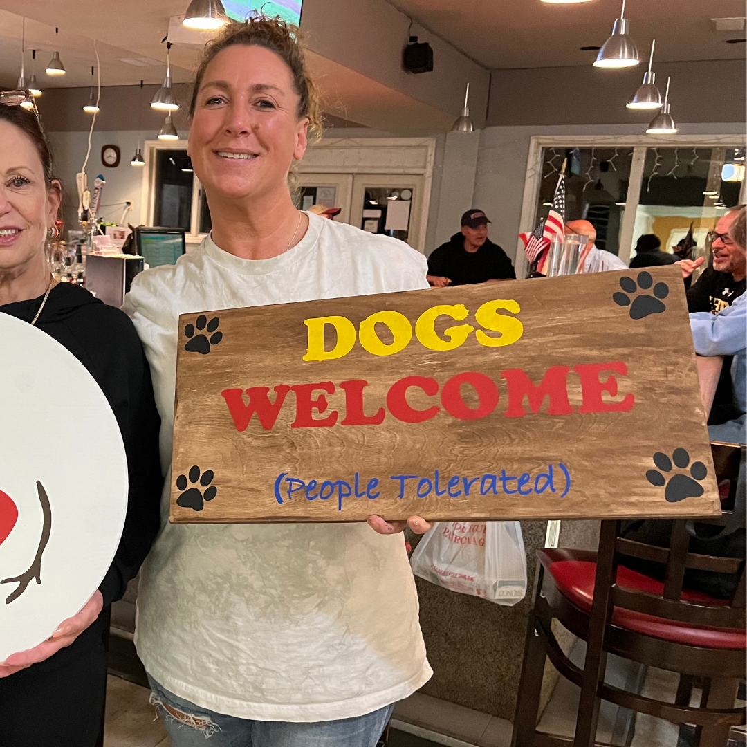 Add a touch of humor to your home with our playful sign that announces, 'Dogs welcome, people tolerated.' Crafted with a lighthearted spirit, this wood sign captures the delightful preference for canine company in your space. Whether hung near the entrance or gifted to a fellow dog enthusiast, let this sign be a charming declaration of the special place your furry friends hold in your heart.
