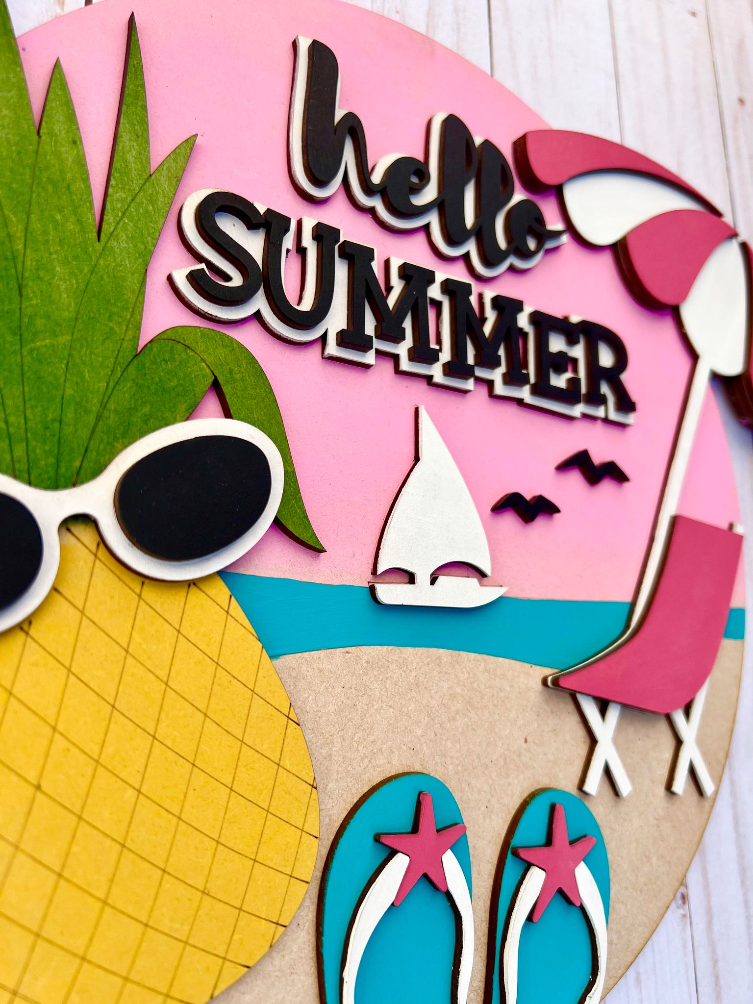 Bring the fun and sun of summer into your home with our 3d wood sign! Featuring a bright beach scene with a playful pineapple in sunglasses, flip flops in the sand, a cozy beach chair and umbrella, and a beautiful sunset - Summer never looked so good!