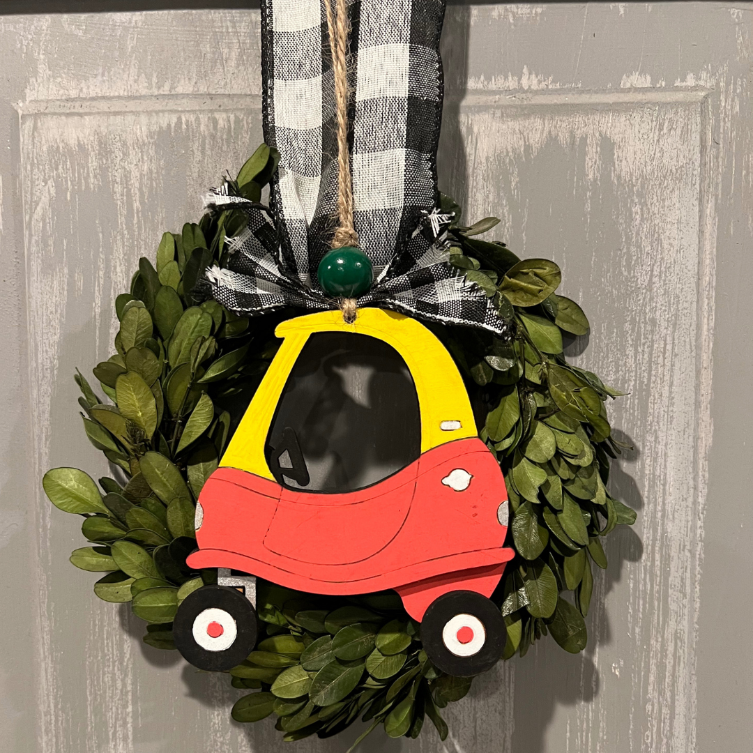 Toddlers Little Red Coupe Car Ornament: Celebrate your child's early adventures with our Toddlers Little Red Coupe Car ornament! This charming ornament captures the essence of childhood joy, making it the perfect gift for their first set of wheels or a nostalgic keepsake to remember their little car days. Made from high-quality materials and expertly crafted, this ornament is ideal for hanging on the Christmas tree or displaying year-round. It’s a delightful addition to any holiday decor and a treasured reminder of those special moments in your toddler's life.